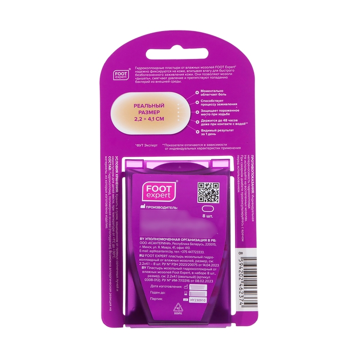 Пластырь FOOT EXPERT мозольный гидроколлоидный от влажных мозолей, размер, см: 2.2х4.1