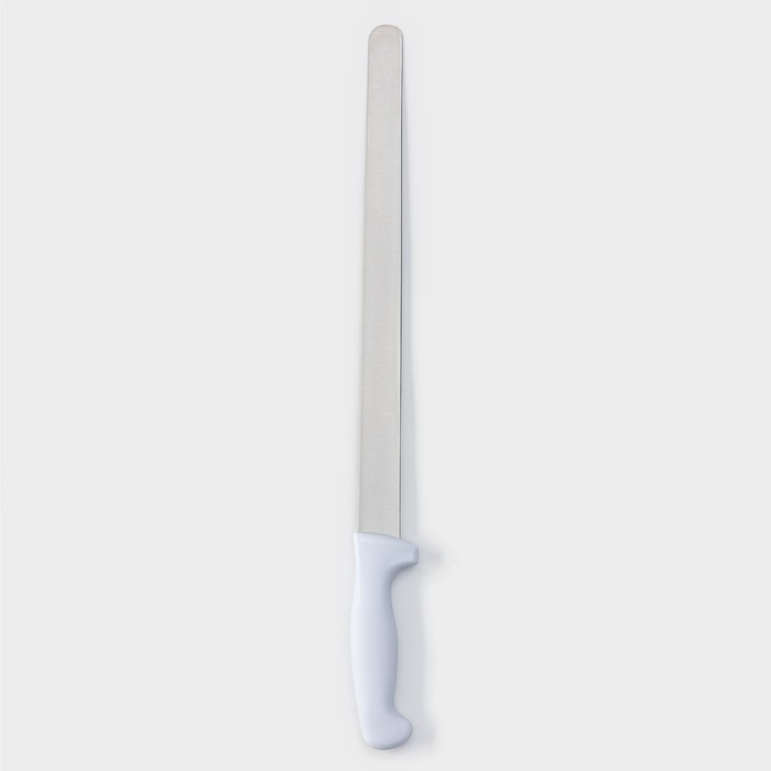 Нож для бисквита, ровный край, ручка пластик, рабочая поверхность 30 см, толщина лезвия 2 мм, цвет белый