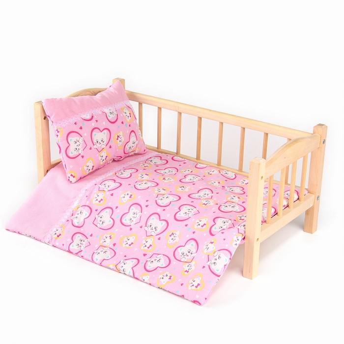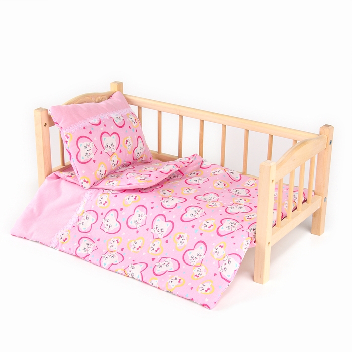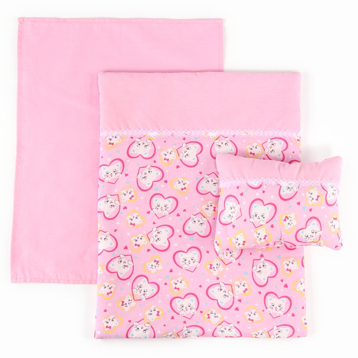 Кукольное постельное «Котята в сердцах»: простынь, одеяло 46 × 36 см, подушка 23 × 17 см
