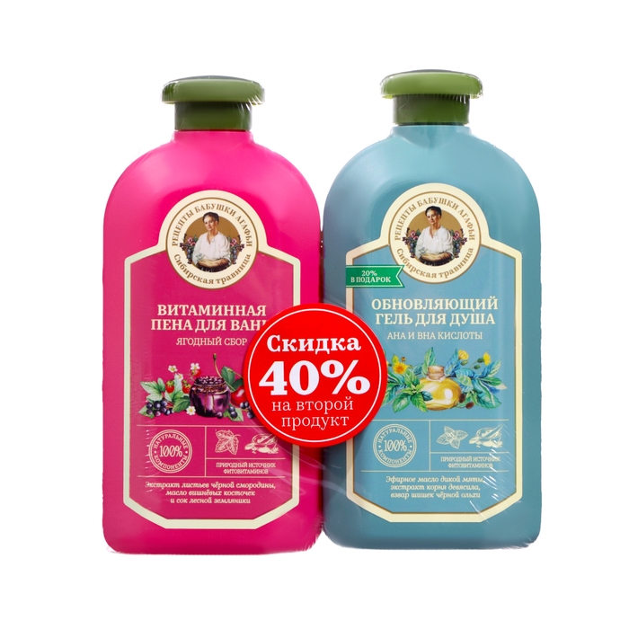 Набор: Гель для душа + Пена для ванн Рецепты Бабушки Агафьи, 500 мл*2