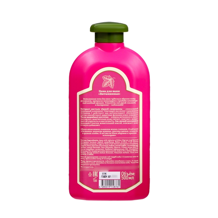Пена для ванн также создана на основе натуральных компонентов. Она образует нежную и пышную пену, которая окутывает тело и дарит ощущение легкости и свежести. Экстракты трав, входящие в состав пены, оказывают благотворное влияние на кожу, делая ее мягкой и гладкой.