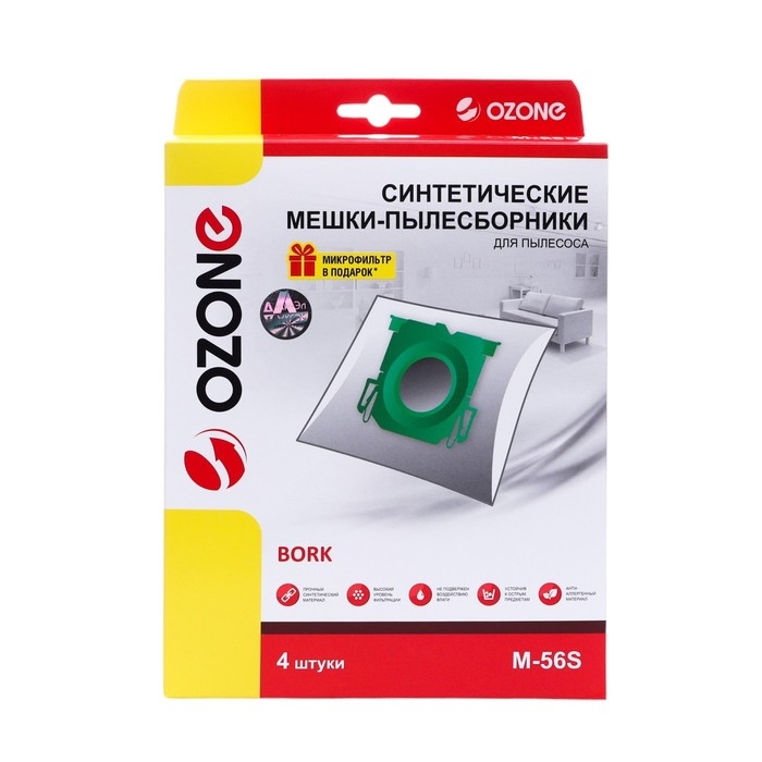 Мешок-пылесборник M-56S Ozone синтетические для пылесоса, 4 шт + микрофильтр - это отличный выбор для тех, кто ценит качество и комфорт. Они обеспечат вам долгую и надежную службу, сохраняя ваш дом в безупречной чистоте.