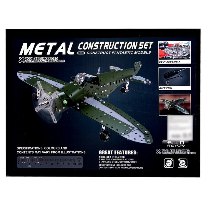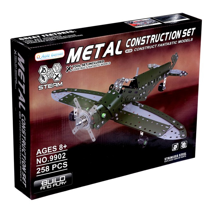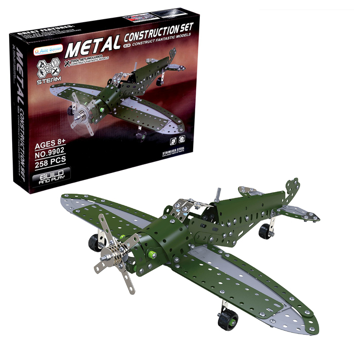 Конструктор металлический «Самолёт бомбардировщик», 258 деталей