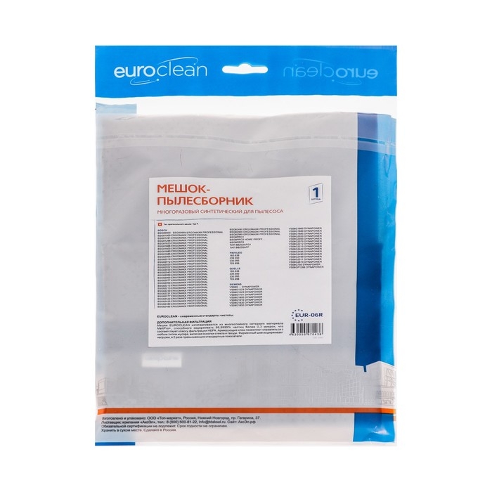 Мешок-пылесборник EUR-06R Euroclean — это многоразовое изделие, предназначенное для большинства моделей пылесосов. Он изготовлен из прочного и долговечного материала, который обеспечивает эффективную фильтрацию воздуха от пыли и грязи.