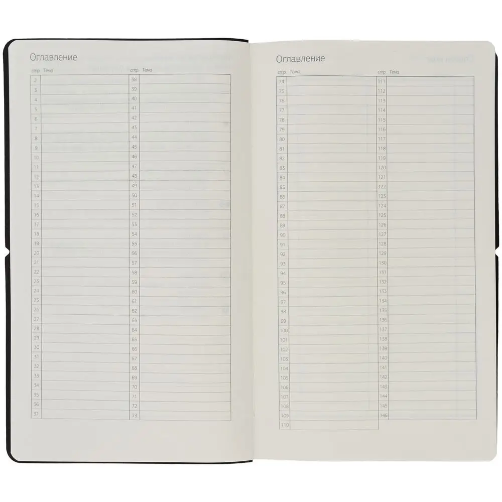 Внутри вы найдете пронумерованные страницы для записей, а также несколько специальных страниц: