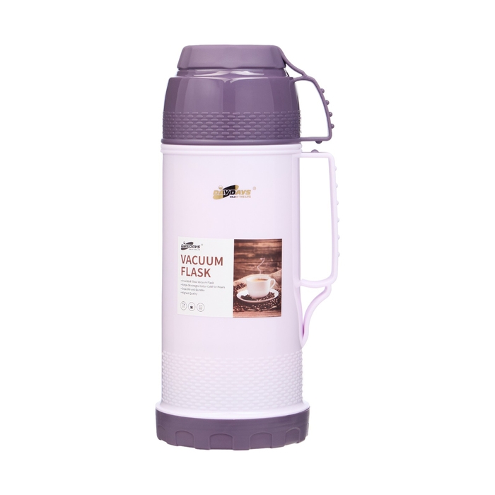 Термос 1.8 л, со стеклянной колбой, сохраняет тепло 12 ч, с кружкой, сиреневый