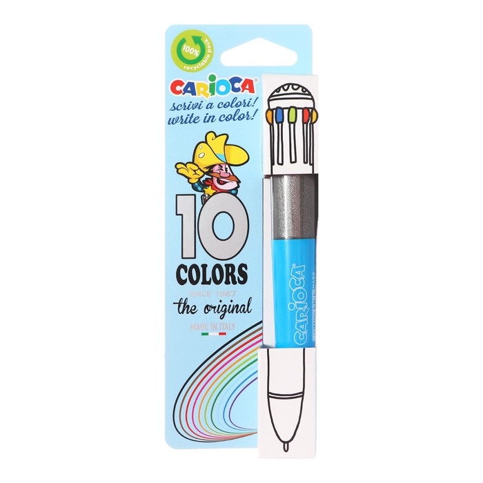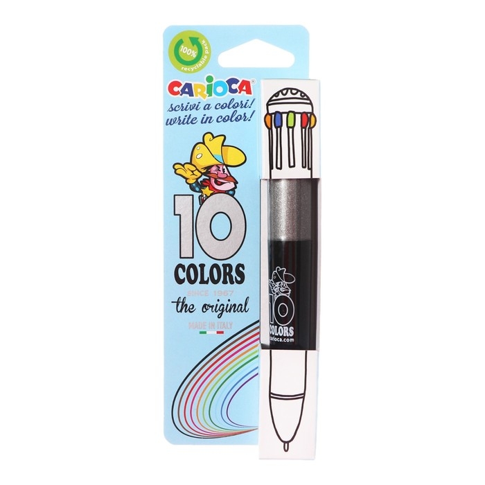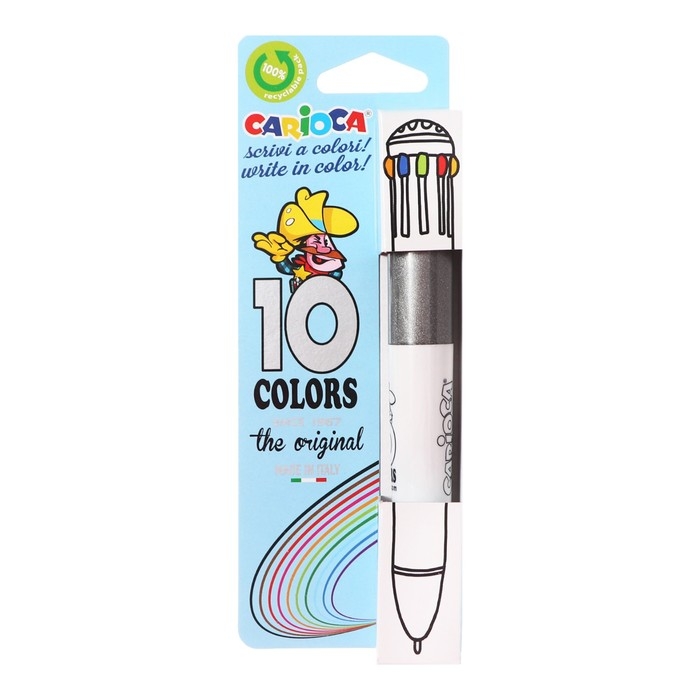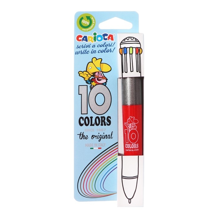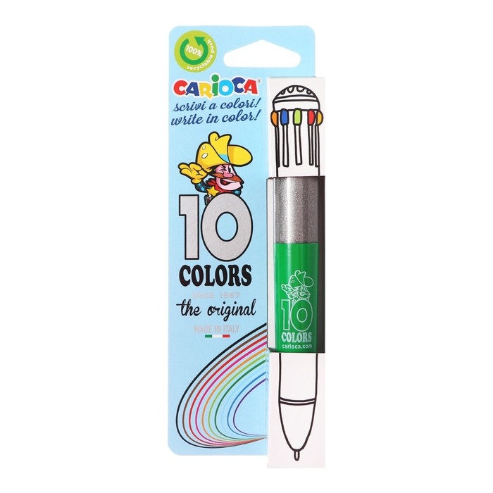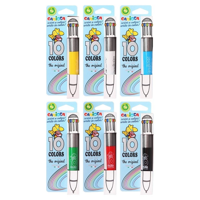 "Carioca" Ручка шариковая автоматическая 10 в 1, 1 мм, 10 цветов. Предлагается в пяти цветных вариантах: с винтажным илифлуоресцентным прозрачным корпусом