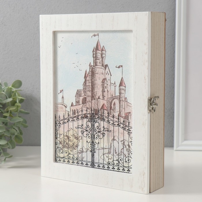Ключница дерево 6 крючков "Замок. Рисунок карандашом" 26х20,3х5,5 см