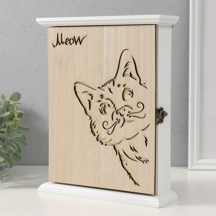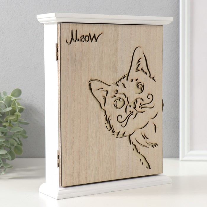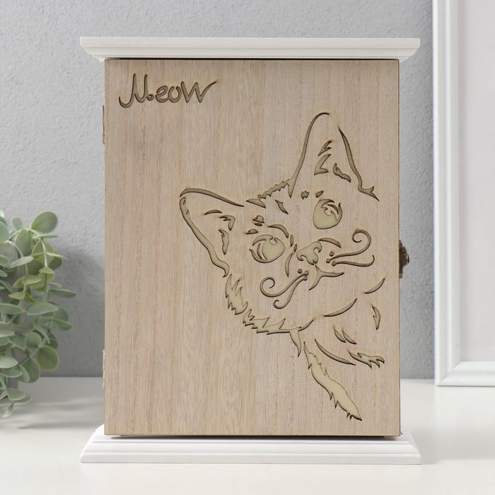 Ключница дерево 6 крючков "Котик" 26,5х20,8х6,3 см