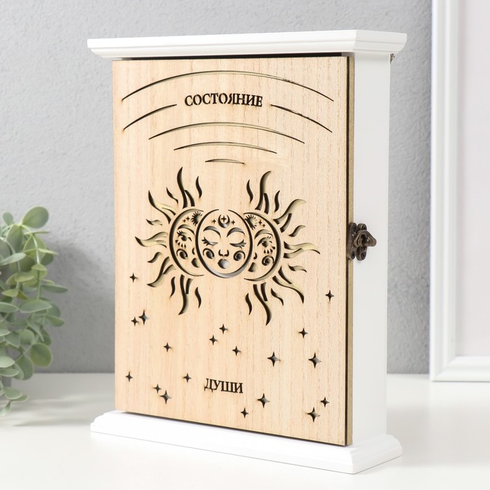 Ключница дерево 6 крючков "Солнце и луна" 26,5х20,8х6,3 см