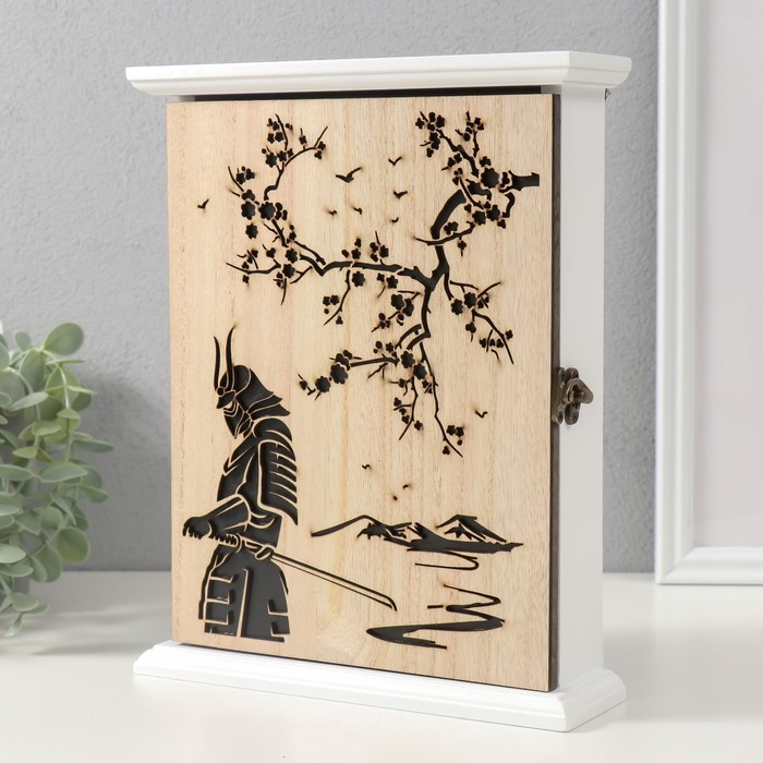 Ключница дерево 6 крючков "Сакура и самурай" 26,5х20,8х6,3 см