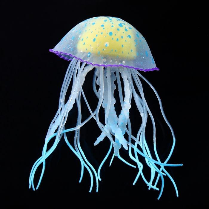 Декор для аквариума "Медуза", силиконовая, флуоресцентная, 6,5 х 6,5 х 11,5 см, синяя 1006961