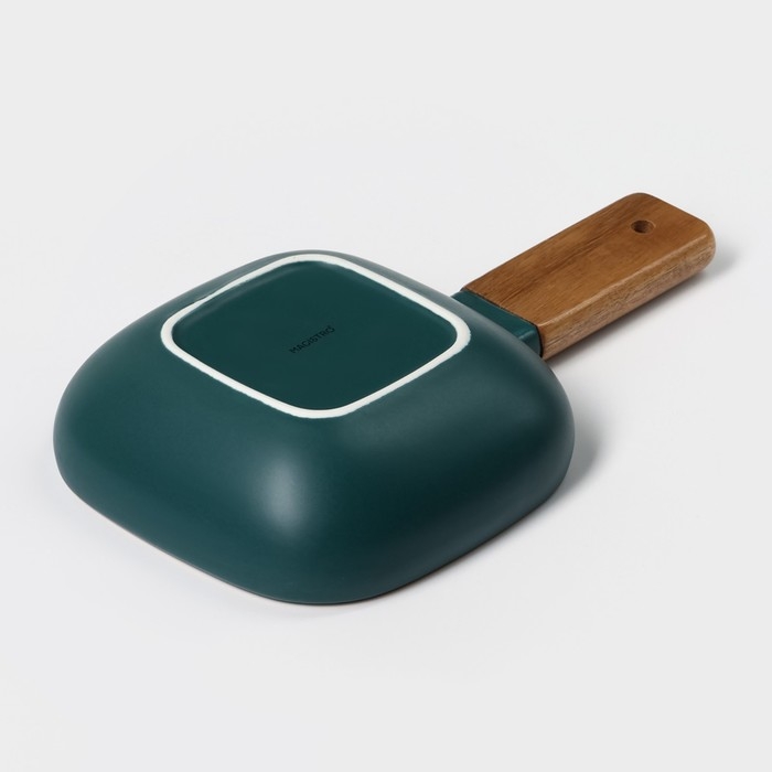 Блюдо фарфоровое для подачи с деревянной ручкой Magistro, 15×15 см, цвет зелёный