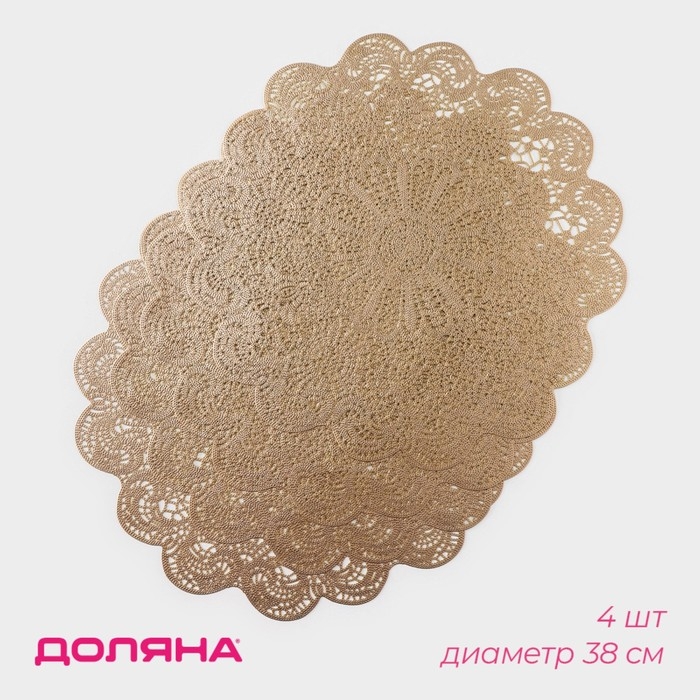 Салфетки сервировочные на стол Доляна «Лидия», d=38 см, 4 шт, цвет золото