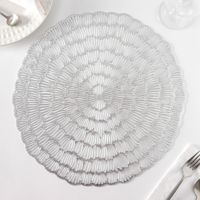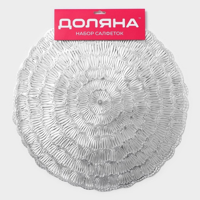 Салфетки сервировочные на стол Доляна «Бутоны», d=38 см, 4 шт, цвет серебро