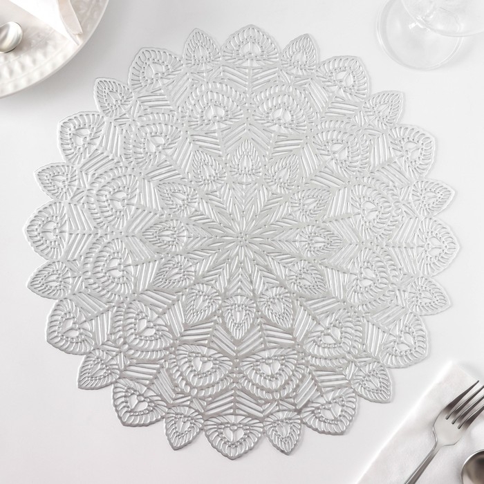 Салфетки сервировочные на стол Доляна «Цунами», d=38 см, 4 шт, цвет серебро