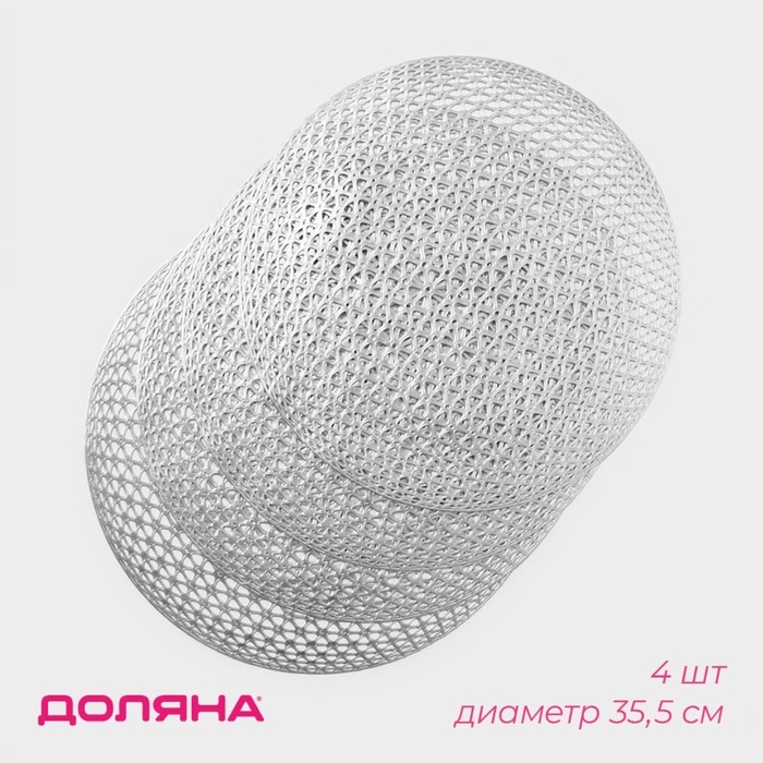 Салфетки сервировочные на стол Доляна «Сфера», d=35,5 см, 4 шт, цвет серебро