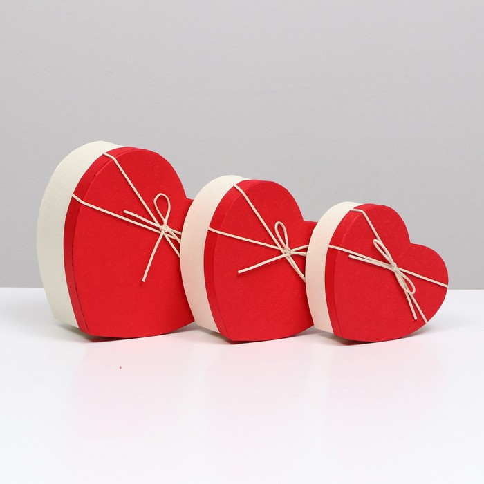 Набор коробок 3 в 1 сердца, белый-красный, 21 х 19 х 9 - 15.5 х 14 х 6 см