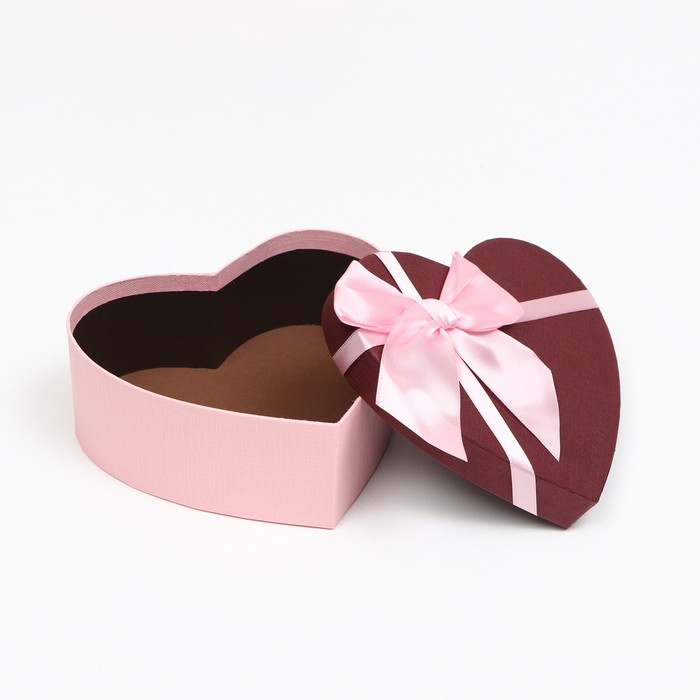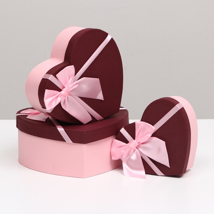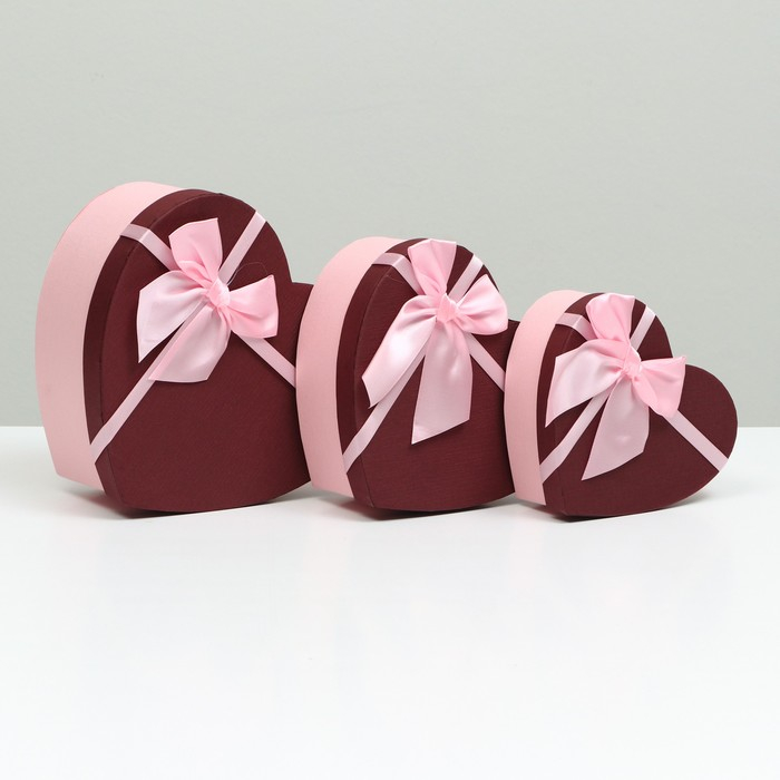 Набор коробок 3 в 1 сердца, бордовый, 21 х 19 х 9 - 15.5 х 14 х 6 см