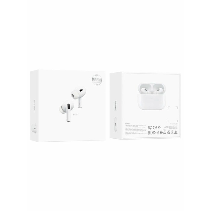 Наушники Hoco EW51, TWS, беспроводные, вакуумные, шумоподавление, BT 5.3, 30/300 мАч, белые