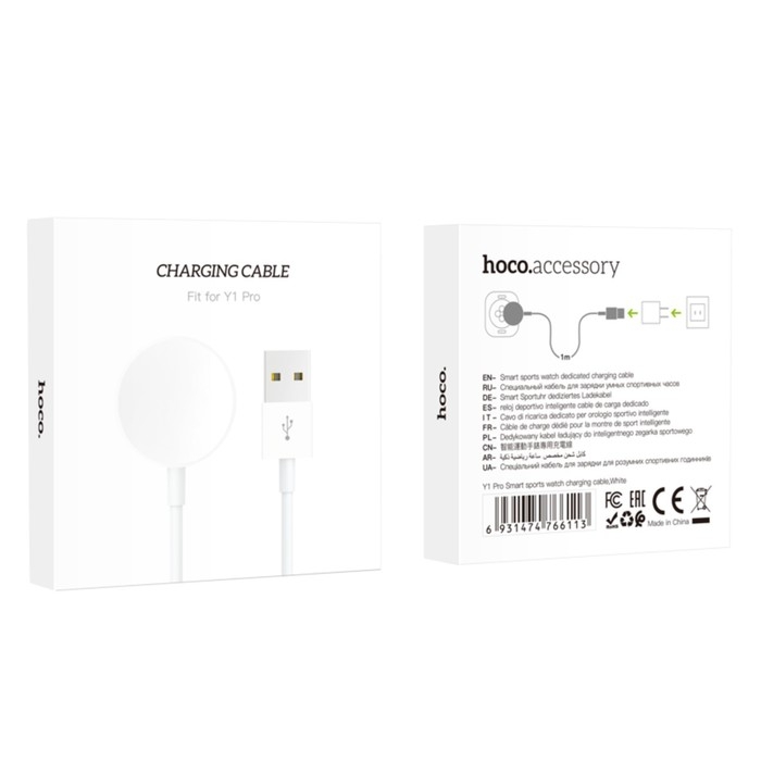 Кабель для зарядки смарт-часов Hoco Y1 Pro, 80 см, белый