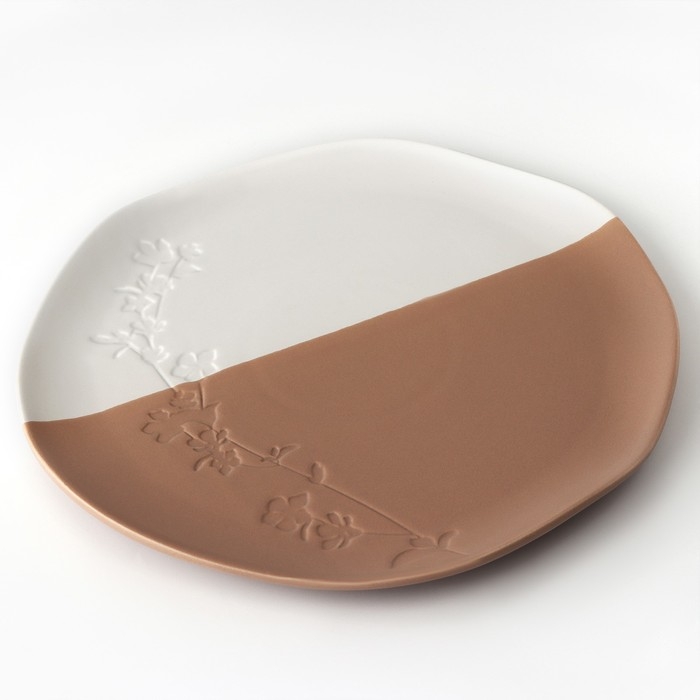 Тарелка Риштанская Керамика "Цветы", синяя, рельефная, 25 см