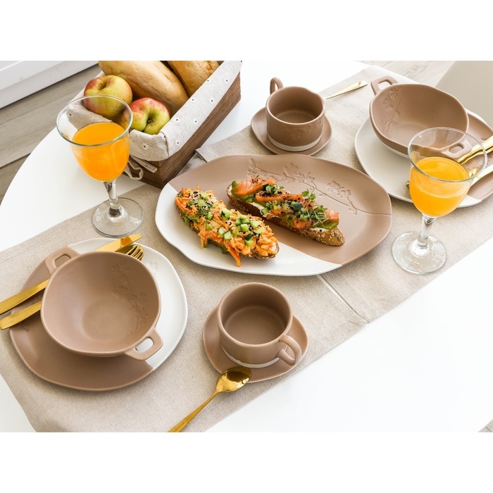 Блюдо фарфоровое с соусником Доляна White Label, d=25 см, цвет белый