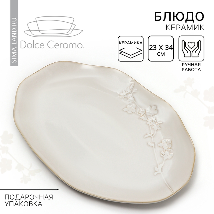 Блюдо фарфоровое овальное c утолщённым краем Доляна White Label, 30,5×20×3 см, цвет белый