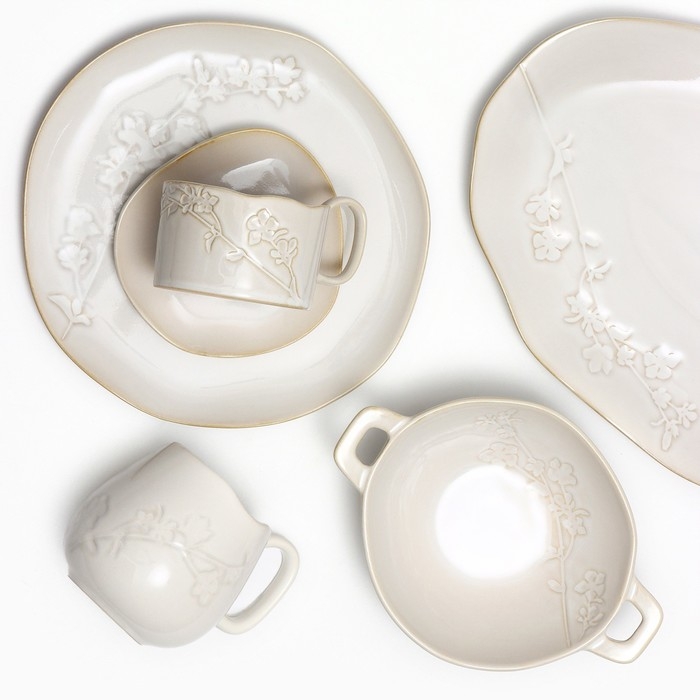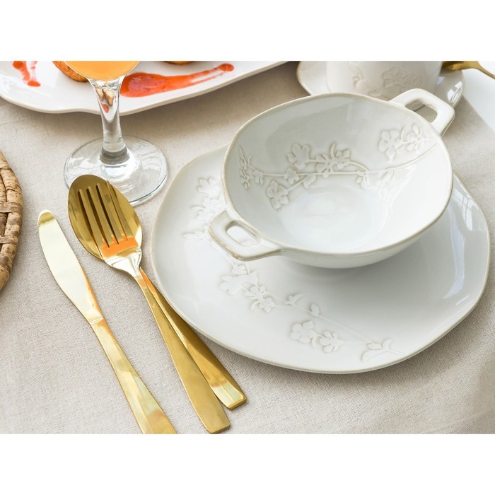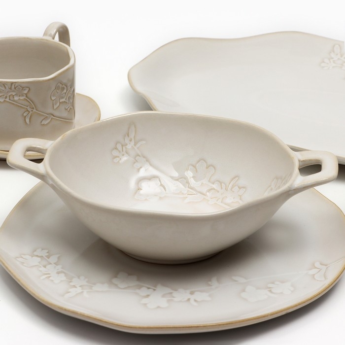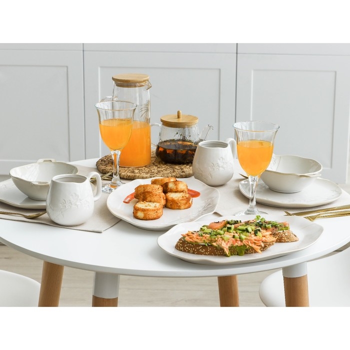 Блюдо фарфоровое с соусником Доляна White Label, d=25 см, цвет белый
