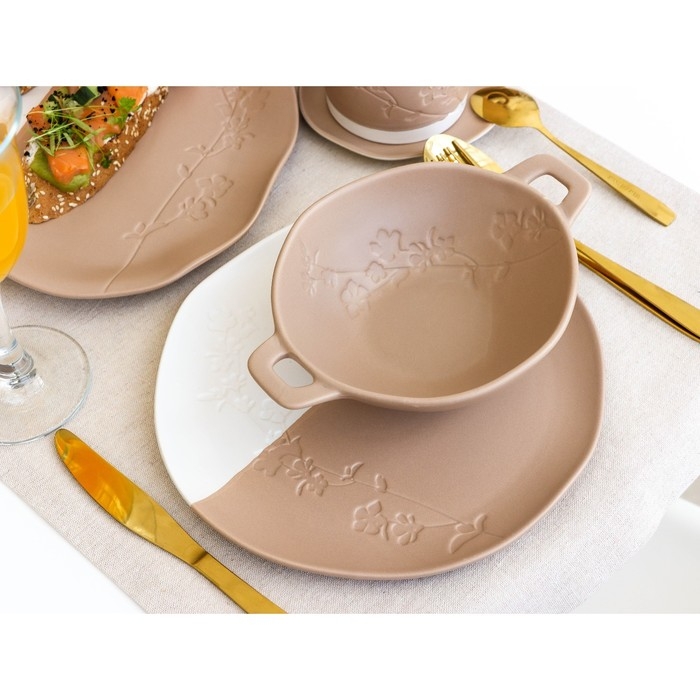 Кружка керамическая с ложкой Доляна «Ноель», 280 мл, цвет бежевый