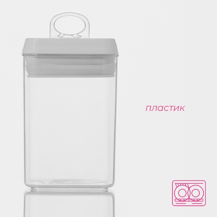 Банка для сыпучих продуктов с вакуумной крышкой Доляна, 900 мл, 9,5×9,5×15 см, цвет белый