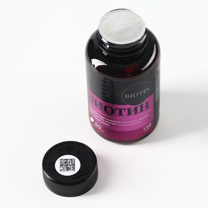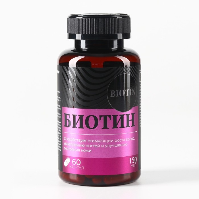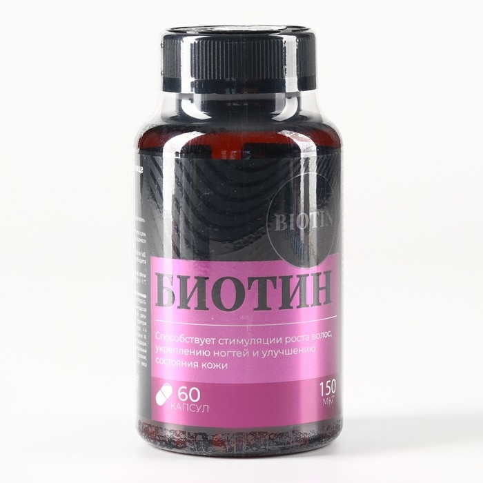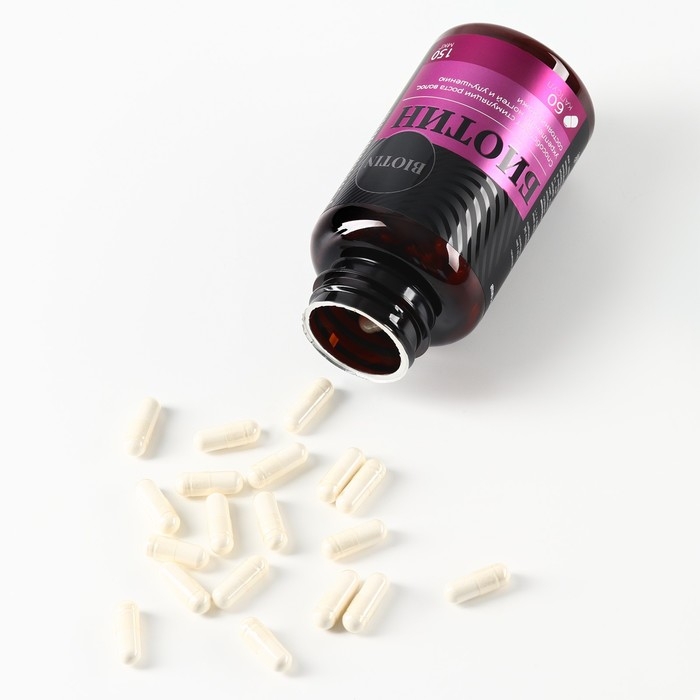 Биотин витамины, стимуляция роста волос, укрепление ногтей и улучшение кожи, 60 капсул