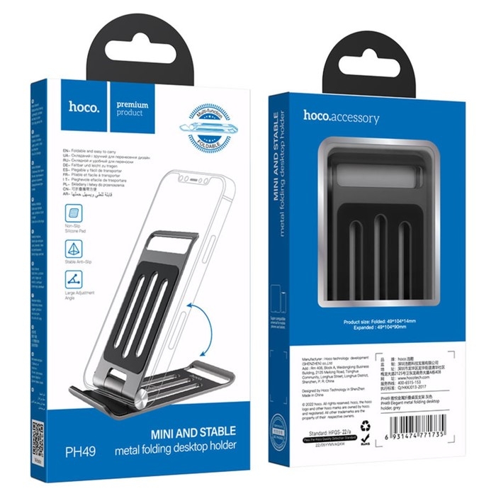 Держатель Hoco PH49, настольная, металлический, 4.7-10,5 дюймов, серый