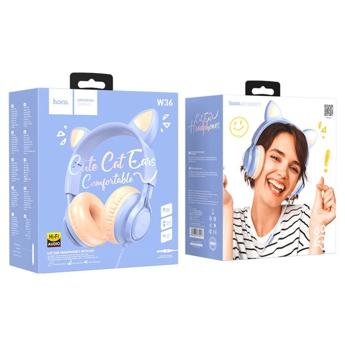 Наушники Hoco W36, проводные, накладные, микрофон, 1.2 м, синий