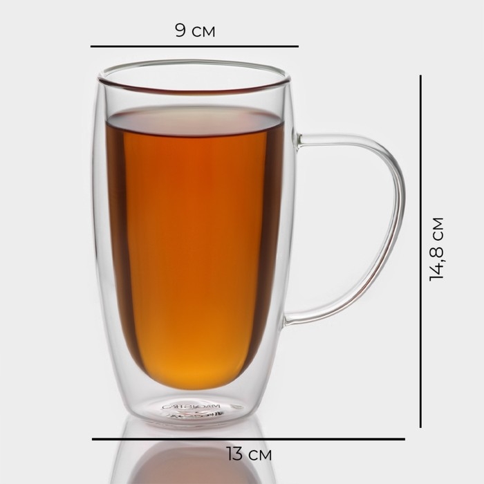 Набор стеклянных кружек с двойными стенками Magistro «Дуо», 450 мл, 13×9×14,8 см, 2 шт