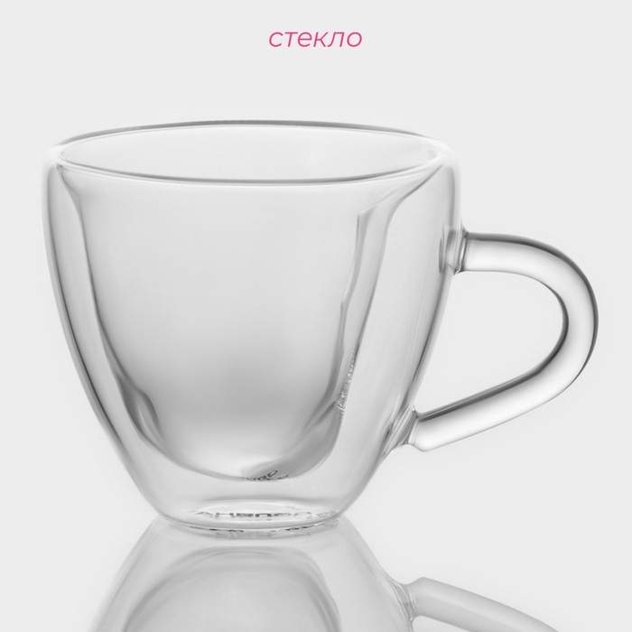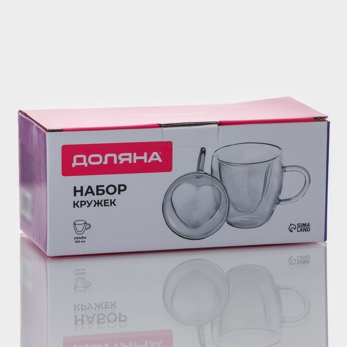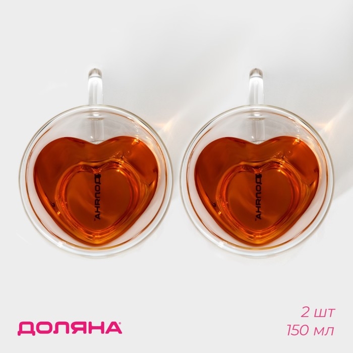 Набор стеклянных кружек с двойными стенками Доляна «Сердце», 150 мл, 11,5×8,5×8 см, 2 шт