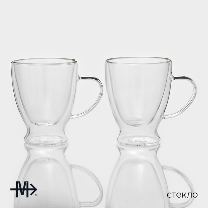 Набор стеклянных кружек с двойными стенками Magistro «Капучино», 300 мл, 12×9×11 см, 2 шт