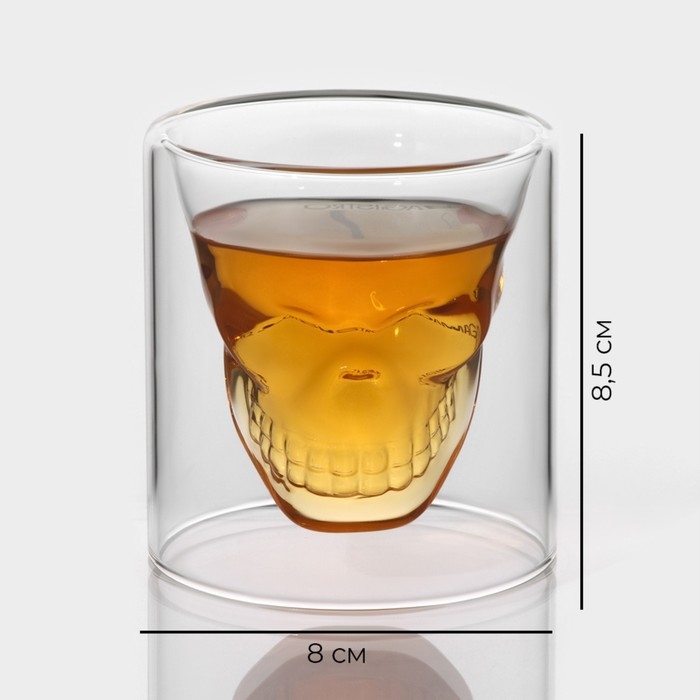 Набор стопок - шотов стеклянных с двойными стенками Magistro «Череп», 150 мл, 8×8,5 см, 2 шт