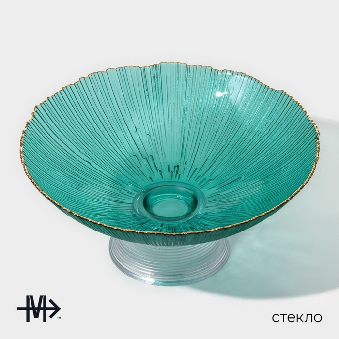 Ваза из стекла для фруктов Magistro «Фейерверк», 1,4 л, 25×10 см, цвет изумрудный
