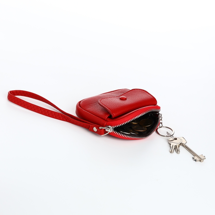 Кошелёк-ключница на молнии, цвет красный