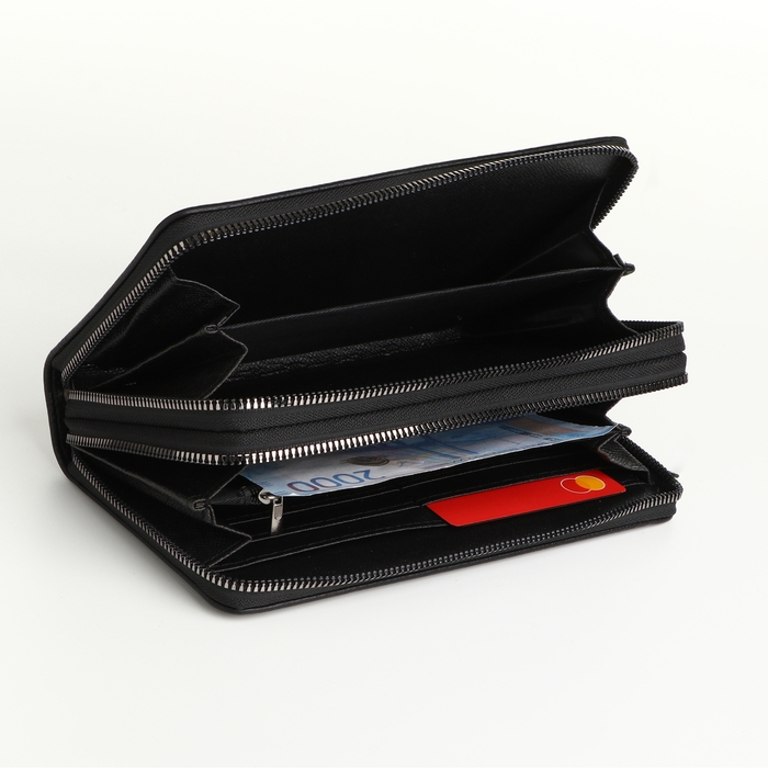 Портмоне-клатч мужское на молнии, цвет чёрный