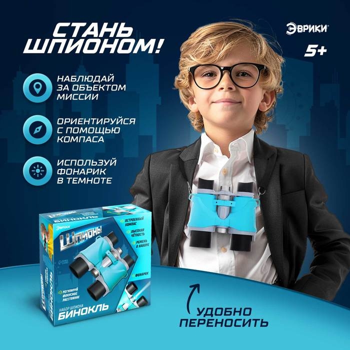Бинокль «Шпион» — идеальное дополнение к детским играм на свежем воздухе. Он раскроет тайны окружающего мира и сделает каждую прогулку захватывающим путешествием. С биноклем ребёнок придумает самые разные игровые сюжеты: от исследования джунглей и космоса, до миссий шпиона и поисков сокровищ.