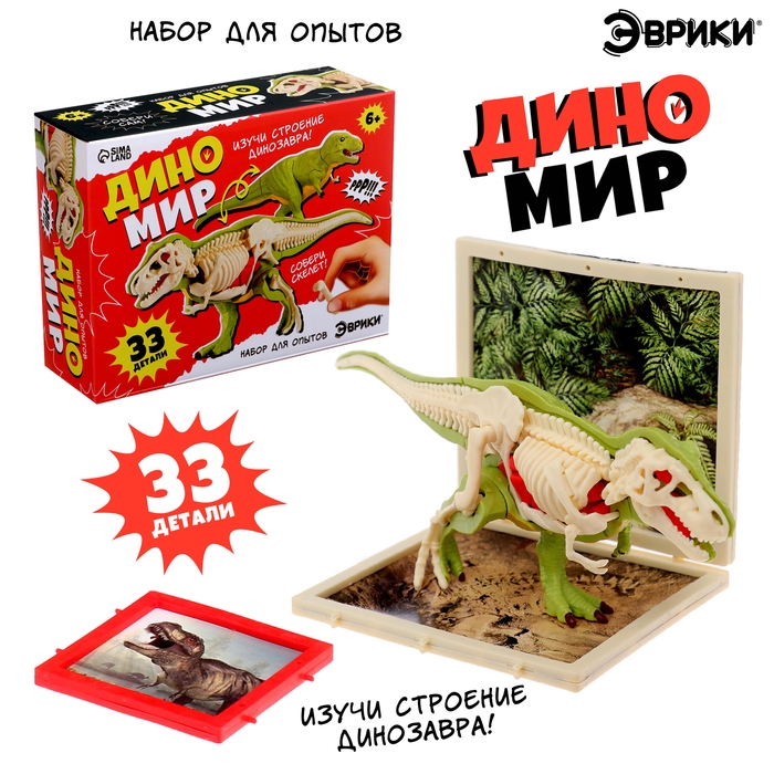 Набор для опытов «Диномир: Тираннозавр», строение тела динозавра, 33 детали