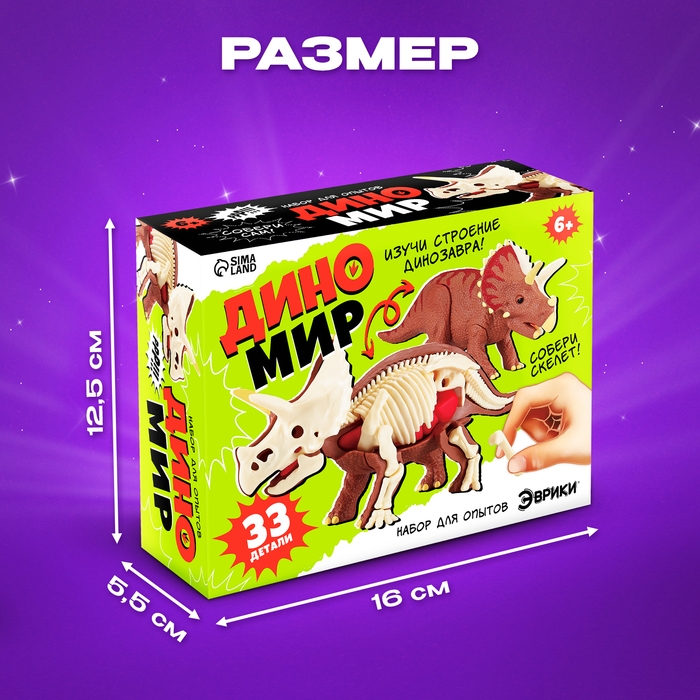 Набор для опытов «Диномир: Трицератопс», строение тела динозавра, 33 детали