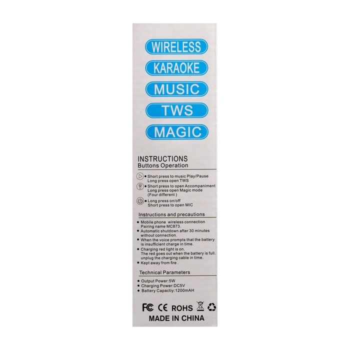 Портативный караоке микрофон, 5 Вт, 1200 мАч, бело-черный