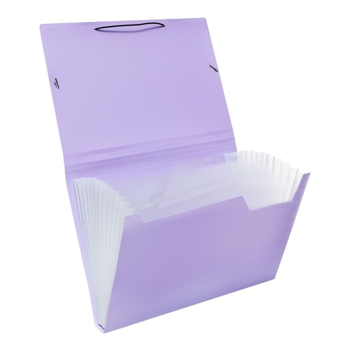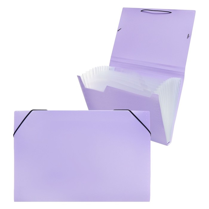 Папка картотека А4, Calligrata "Акварель", 13 отделений, пластиковая, 700 мкм, лавандовая, резинка чёрная