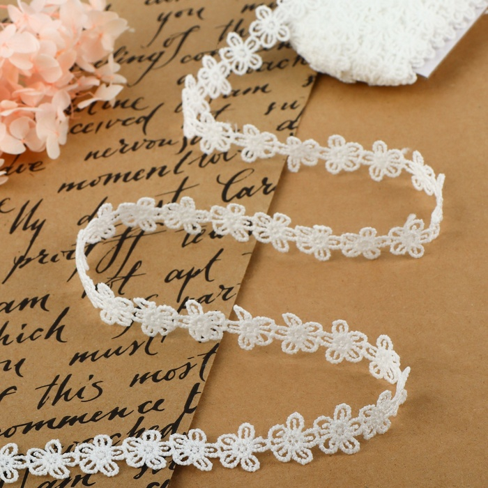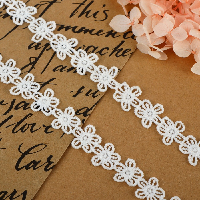 Кружево гипюровое, 15 мм × 14 ± 1 м, цвет белый