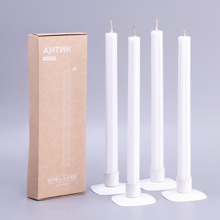 Набор свечей античных , 2,2х25 см, 4 штуки, пальмовый воск, белая, 2 ч Sima Home