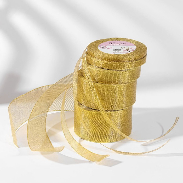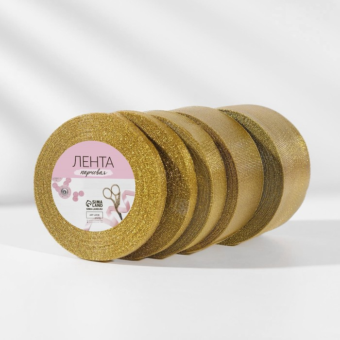 Набор парчовых лент, 5 шт, размер лент: 6/10/20/40/50 мм, 23 ± 1 м, цвет золотой