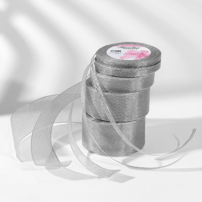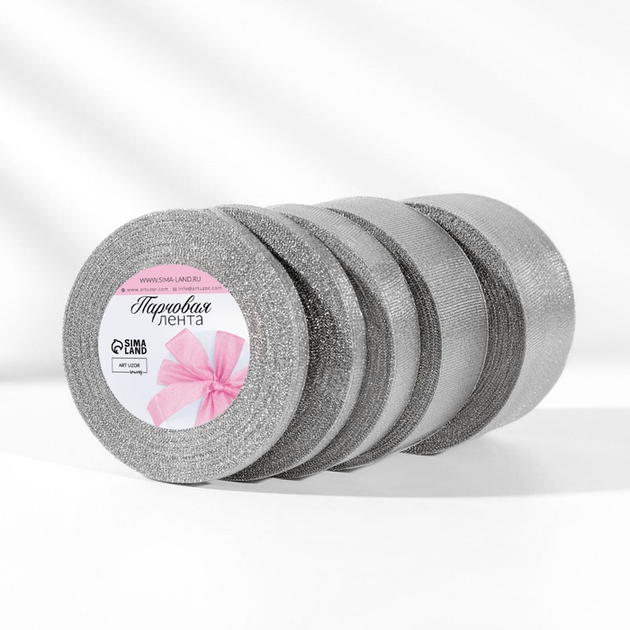 Набор парчовых лент, 5 шт, размер лент: 6/10/20/40/50 мм, 23 ± 1 м, цвет серебряный